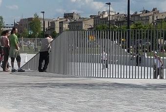 Après les commerces dans les hangars du quai Bacalan, la zone de balade au niveau des Quinconces et l’incontournable Miroir d’Eau, devenu mare à canards dès qu’il fait beau, cette partie-là des quais, en amont du Pont de Pierre, est davantage réservée aux sports : hockey, pelote basque, basket, musculation, etc. L’ensemble est sobre, assez minéral, et la pelouse peine à ressembler à un gazon anglais. Plus ludique mais moins beau que les autres espaces, celui-ci se