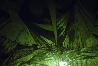 Place du Trocadéro (et du 11 novembre) vue à travers les vitres encollées du musée de l’Homme la nuit de sa fermeture pour travaux, Palais de Chaillot, Paris (16e), le 21 mars 2009.