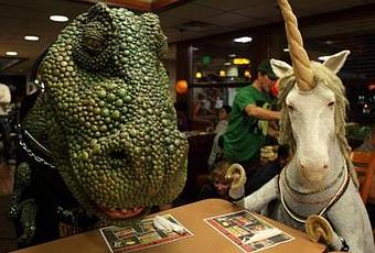 Denny's, le fast food américain, c'est ouvert 24/24, alors les serveuses ne sont pas étonnées de vous voir débarquer de soirée, avec un dinosaure hurleur, un léprechaune irlandais et une licorne paumée.