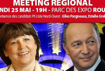 La Fédération de Seine-Maritime du PS vous accueille au Grand Meeting des Européennes qui se déroulera le Lundi 25 mai au Parc des Expositions de Rouen en présence de Martine AUBRY et de Laurent FABIUS. Les candidats socialistes de la liste du PS pour le Nord-Ouest seront présents dont Gilles Pargneaux (tête de liste) et Estelle Grelier (N°2 et représentante de la Haute-Normandie, vice-présidente de la Région, 1ère Adjointe au maire de Fécamp). La dureté de la situation, l’importance de donner une chance à la gauche européenne de renverser la vapeur libérale au plan européen, la double particularité socialiste qui est d’avoir un programme à l’échelle de toute l’Europe [le Manisfeste] et le groupe de députés de tous pays européens pour “Changer l’Europe”… autant de raisons de soutenir la liste socialiste et de voter lors de l’unique tour le Dimanche 7 Juin prochain.