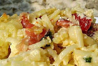 Ce soir c’est gratin de pâtes ! Mais comme c’est –bientôt- l’été, et que mon plant de basilic trône fièrement sur mon balcon, je me suis dit « Pourquoi ne pas sublimer ce gratin tout baal ?… »