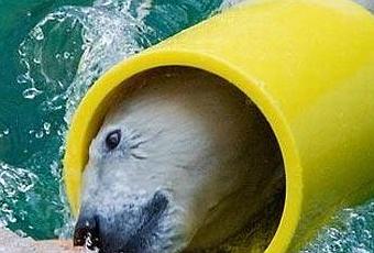Ours polaire joue au ballon