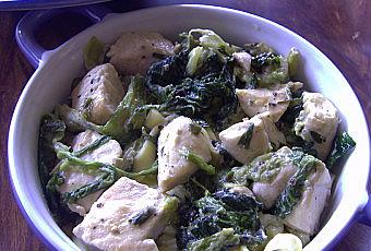 Dans un wok faire fondre le fruit d'or ,y jeter tous les ingrédients (ciboulette ,persil )et rajouter les dés de poulet .REMUER .
