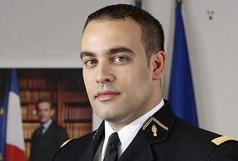 À 32 ans, ce capitaine reçoit en uniforme noir et par une vigoureuse poignée de main. Tenant son képi où a été brodé le croissant de lune, symbole de l'islam, entre deux rameaux d'olivier, il