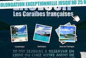 Il semble que le site partirauxcaraibes.fr lancé à gros renfort médiatique par Yves Gégo le 5 mai dernier avec 10 000 séjours aux Antilles à prix bcba n'ai pas le succès escompté. A en voir le bandeau de prolongation et le compteur de visite plus gros que le rocher du Diamant, nos îles n'attirent pas. C'est bien la preuve que le prix, sans un bon positionnement derrière, ça ne marche pas.