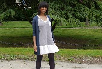 Je sais, vous devez penser que je fais une fixette sur le rayé… Ben vous avez raison. Il y a une règle qui dit que le rayé horizontale élargit, bon j’ai pas eu cette impression, même si c’est le cas c’est pas grave. Certaines d’entre nous flash sur le Liberty Cherry et moi en Rayures j’assure (fallait que je trouve une rime, pardonnez moi). Cette robe rappelle moins la marinière que les 2 robes précédentes que je vous avait présenté du fait des rayures plus condensées.