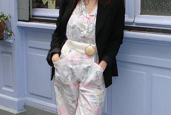 Je reste un peu du coup, pour vous montrer la combi-pantalon Naf Naf sous-citée (dans le billet précédent quoi !). Je n'ai pourtant pas l'habitude de ce genre de couleurs pastels (d'où la veste noire)...