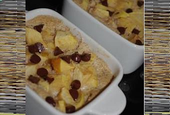 Pelez la pomme et coupez-la en petits morceaux. Partagez ces morceaux en trois et « jetez » les dans les plats. Ajoutez quelques pépites de chocolat sur le dessus. Faites cuire les gratins 20 minutes dans un four préchauffé à 180°C. Une fois cuit, servez sans attendre parce qu’ils dégonflent très vite…