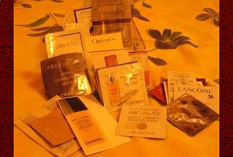 ben oui pensez donc : des petits échantillons de produit de beauté (qu’on achètera pas forcement à cause du prix)que l’on garde et qu’on utilise pas toujours !!!!