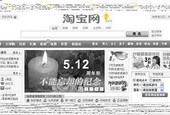 Taobao.com en noir & blanc à la mémoire du séisme