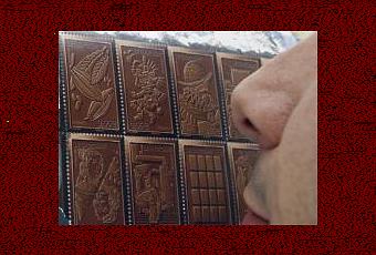 La Poste nous a habitués depuis quelques années, aux timbres en forme de coeur, créés tous les ans par un grand styliste, chaque fois différent. Là, elle frappe encore plus fort puisqu'elle sort des timbres senteur chocolat! Avis donc aux gourmands!