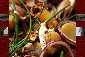 Ingrédients : 350g de petites patates nouvelles – 100g de hareng fumé – 100g de haddock – ½ oignon rouge – 1 petit bol de chou blanc (ne le cherchez pas sur les photos je l'ai oublié dans le frigo !) - 30g de noisettes – 1càc de sucre en poudre – un bouquet d'herbe composé de persil, de cerfeuil et de ciboulette – 3càs de crème liquide – 1càc de pâte de curry orange – 1càc de Savora