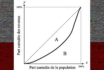 On lui doit le coefficient de Gini, une mesure de l'inégalité de revenu dans une société donnée. Sur le diagramme de la courbe de Lorenz (voir image ci-contre), qui donne la richesse cumulée en fonction de la population, si l'aire de la zone entre la diagonale d'égalité parfaite (en pointillés) et la courbe de Lorentz (en gras) est A, et l'aire de la zone à l'extérieur de la courbe de Lorenz est B, alors le coefficient de Gini est A/(A+B).