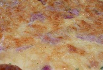 4/Verser le tout sur les lardons et le jambon.