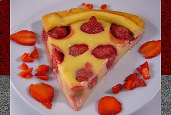 Encore une association fraises-coco, je ne m’en lasse pas. J’avais envie d’un clafoutis mais aucune cerise dans mon frigo, seulement une barquette de fraises qui s’ennuyait un peu ! Le résultat, … délicieux !
