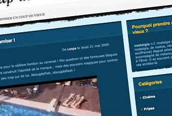 Coup-de-vieux.fr, c’est un peu le Vie de Merde du moment. Il n’a même pas 2 mois qu’on en parle déjà ici ou là. Le concept n’est pas révolutionnaire mais il fallait le faire. Coup de Vieux vous propose de prendre conscience que vous n’êtes plus l’enfant qui grignotait des Raiders ou machait les Tubble Gums. Vous pouvez aussi suivre le blog sur twitter. Félicitation à mes 3 anciens compères Crev8, Malisz et Loops pour leur merveilleux blog.
