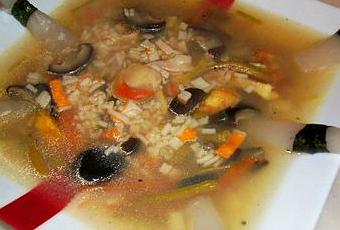 Servez la soupe dans des assiettes creuses et déposez les feuilles de riz au bord de manière à ce qu'elles soient aussi dans le bouillon.( comme sur la photo)