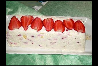 6/ Tapissez la terrine de film. Coupez le reste des fraises en deux, rangez-les têtes-bêche au fond. Versez la préparation et tassez bien avec le dos d'une cuillère. Recouvrez la terrine d'un film. Laissez prendre au réfrigérateu au moins 3H.