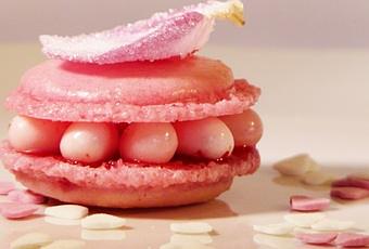 Pour la garniture un coulis de fraise et quelques jelly belly bean saveur cheesecake aux fraises et pour finir déposez un pétale cristallisé sur ce macaron unique comme l’est ma maman ( et toutes les mamans non ?)