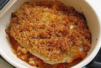Voilà une autre façon de manger du poisson: sur un lit de légumes fondants et sous un crumble croustillant et parfumé, le tout présenté en petites cocottes individuelles: un délice!