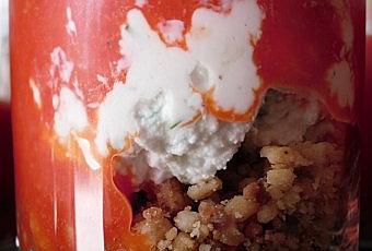 Verrines, Velouté glacé de poivron, fêta et pignons