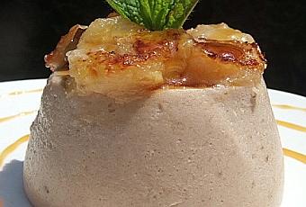 Pour le décor, vous pouvez dorer dans du beurre à la poêle, quelques rondelles de banane. Les laisser bien refroidir et poser sur les bavarois. Napper de caramel liquide bien froid (j’ai adoré le rajout du caramel !).
