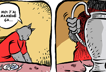 Initialement il devait s'agir du dénouement de l'histoire "Les merveilleuses avantures de la Ligue des champions", et puis finalement...Non! C'est que je m'y suis attaché moi, à ce chat Barça! Alors il devrait y avoir envore une page (peut être 2). En espérant que la suite vous plaise.