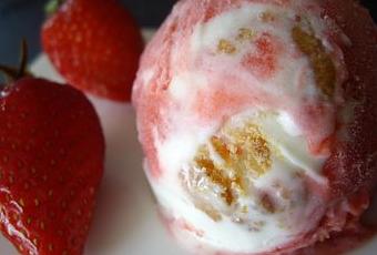 Encore une fois très largement inspirée par Pierre Hermé, c'est sa glace Symphonie qui m'a attirée: ma seule coquetterie sera de remplacer le sorbet aux fruits rouges par un sorbet à la fraise et de modifier ici ou là la proportion d'un ingrédient (comme beaucoup j'ai tendance à vouloir diminuer le sucre, mais juste un peu car dans les glaces sa présence joue un rôle important dans la texture finale).