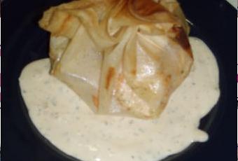 Faire cuire jusqu'à ce que la feuilles de brick se colore un peu.