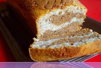 - A l'aide d'une cuillère à soupe, prélevez un peu de pâte blanche et disposez la dans le fond de moule beurré. Puis versez un peu de pâte chocolaté dessus, etc, remplir le moule de cette manière. A la fin passer la pointe d’un couteau dans la pâte le long du moule afin de créer des marbrure.