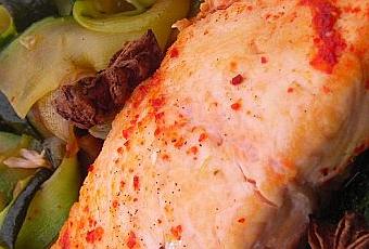 Je vous ai présenté il y a quelques temps cette recette de tagliatelles de courgettes au sel vanillé. C'est une recette que je fais souvent notamment quand je suis seule au un repas, mais j'ai voulu changer, d'où le pavé de saumon ;) et puis bien sur pour couronner le tout j'y ai mis ma petite touche personnelle ;)