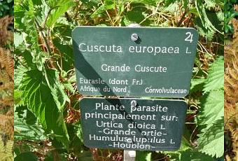 Cette plante parasite qui ne peut se propager qu'en pompant la sève d'une autre plante appartient à la famille des Convolvulacées. C'est donc une cousine redoutable du terrible liseron, mais aussi des ipomées.Une curiosité végétale à découvrir au coeur de Paris parmi bien d'autres. L'accès au Jardin des plantes et à l'École de Botanique est libre et gratuit, raison de plus pour ne pas s'en priver...