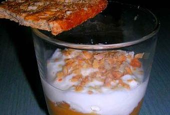 je l'ai mangé avec un peu de fromage blanc mélangé à 2-3 goutes de vanille liquide, et un biscuit (cassé! comme tout le reste du paquet!), que j'ai émietté dessus le tout