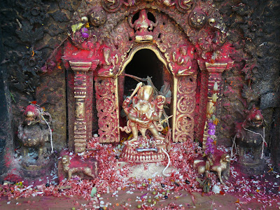 Or, bleu profond, rose carmin, ces trois couleurs m'accompagnent depuis ma dernière visite au Musée Jacquemart-André ... et les voilà, là, devant moi, bien présentes, avec cette sépulture faite d'un panneau en bois doré sur lequel reposent quelques pétales d'or, un bouquet de roses et une éponge bleue.