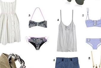 Je continue, après Miss Tape à l’œil on jette un petit coup d’œil à son exact opposé qui passe elle, ses vacances plutôt drapée dans la discrétion , Belle-ile, La baule, Le touquet sont plus sa tasse de thé, donc on prévoit une valise pour se détendre sur les bords de l’atlantique, se reposer loin du tumulte, respirer les embruns, faire quelques cousinades, tout ça avec un chic délicieusement retro, classique mais trendy.
