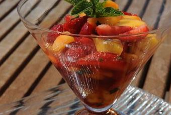 aujourd'hui recette d'une petite salade de fruit bien fraîche avec les fraises du jardin, des gariguettes et aussi la menthe du jardin et ....non non la mangue ne pousse pas dans mon jardin, dommage...Pour les proportions c'est un peu au pif pour les fraises, vous mettez comme vous voulez...à déguster bien frais