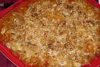 Disposer les légumes au fond d'un plat, ajouter le poisson, verser dessus la sauce hollandaise, répartir le crumble, enfourner 30 mn Th 7.