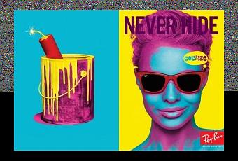 Nouvelle Campagne de Ray-Ban, qui se jette dans la communication sur-colorée dans l’esprit pop culture.