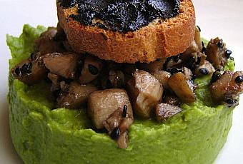 tas de purée sur lequel on disposera les pétoncles. Disposer un canapé sur chaque tas et arroser d’une goûte ou deux d’huile de sésame.