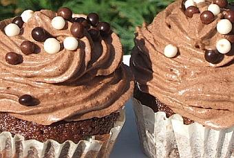 Remplir une poche à pâtisserie munie d’une douille cannelée avec avec la crème moka et garnir les cupcakes. Décorer éventuellement avec des copeaux de chocolat, du cacao en poudre tamisé, des vermicelles ou des billes en chocolat.