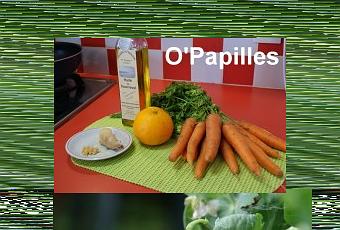 Faire chauffer l'huile à feu doux et ajouter le zeste d'orange finement coupé en lanières, le jus de l'orange pressée et le gingembre. Porter à ébullition avant d'ajouter les carottes nouvelles juste grattées et coupées en petits bâtonnets. Couvrir et laisser cuire à feu doux durant 15mn. Retirer du feu quand le jus de cuisson est presque entièrement évaporé et les carottes légèrement glacées.