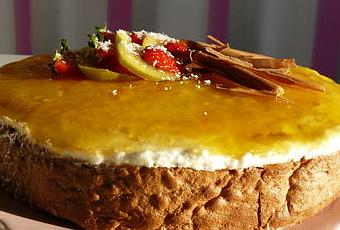 Chauffer la pulpe avec le sucre et le jus de citron. Incorporer la gélatine ramollie. Faire prendre dans un disque de 16cm au froid.