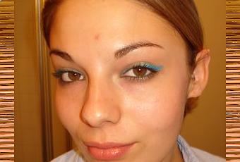 3. Avec le crayon bleu effet métallisé de bourjois j'ai repassé sur le trais de fard dans le coin interne de l'oeil et sur la "virgule". Puis J'ai remis un peu de fard a paupiére pour fondre les deux couleurs du trais