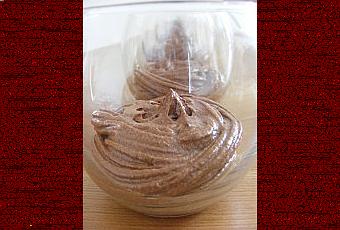 D'une autre verrine de chantilly, de poire et de mousse au chocolat. (La mousse est la même que dans la charlotte. Il m'en restait après avoir confectionné mes verrines.)