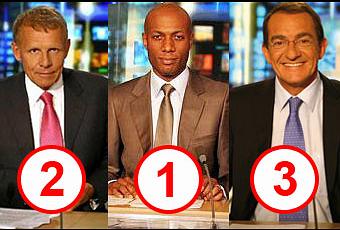 Une étude OpinionWay qui place Harry Roselmack en tête avec Patrick Poivre d’ Arvor en 2ème place et Jean-Pierre Pernaut en troisième place. Arrive en 4ème position Nagui (éjecté du podium), Jean-Pierre Foucault en 5ème place.