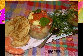 Répartir la préparation dans deux verrines. Parsemez d'oeufs de truite et décorez du reste de coriandre.