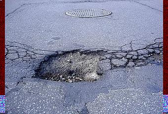 ha... ;)Voici une petite photo de nos charmants nids-de-poule dont nous sommes la fière Kapitale! Han?! Nous avons même un site internet dédié à ces charmantes mangeuses de suspension automobile! C'est pour dire...