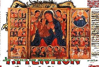 O Mère bénie entre toutes, toi qui as enfanté le Verbe de Dieu, le Seul Saint, reçois l'offrande de notre prière. Garde-nous de tout malheur et de toute menace, nous qui te chantons d'un même coeur :
