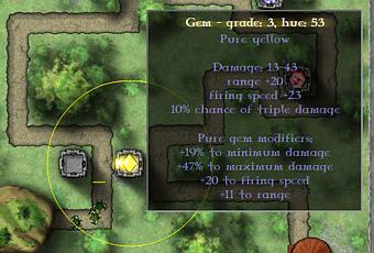 Dans GemCraft, tours et caractéristiques des armes sont différenciées. On peut très bien avoir une tour inactive. Pour l'activer, il suffit de glisser dessus une gemme ; de ses caractéristiques dépendront les capacités défensives de la tour.