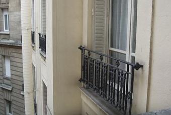 De la fenêtre de la cuisine d'abord, on voit les fenêtres des chambres et la cour intérieure pavée où tout résonne (en particulier les poubelles et les bruits du restaurant).